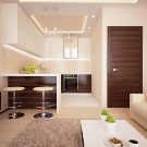 التوزيع الصحيح للمناطق ، والديكور المختص ، ومجموعة المطبخ الصغيرة ، وعداد البار الذي يستخدم أيضًا كطاولة طعام ، والأجهزة المنزلية المدمجة هي النقاط الرئيسية التي يجب مراعاتها عند أداء العمل. تتميز غرفة المعيشة والمطبخ الصغيرة في خروتشوف بنوع من الأجواء المريحة والدافئة. على الرغم من صغر حجمها ، فهي مريحة وجيدة دائمًا هنا..