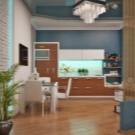 - باستخدام ضوء مختلف. تتم جميع عمليات تحضير الطعام في منطقة العمل ، لذلك يجب أن يكون المطبخ مزودًا بإضاءة جيدة ، ولكن يمكن تركيب إضاءة أكثر ليونة لغرفة المعيشة ، مما يجعل الجو مريحًا وهادئًا قدر الإمكان..