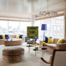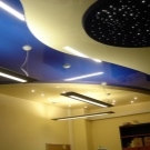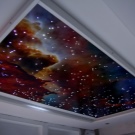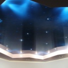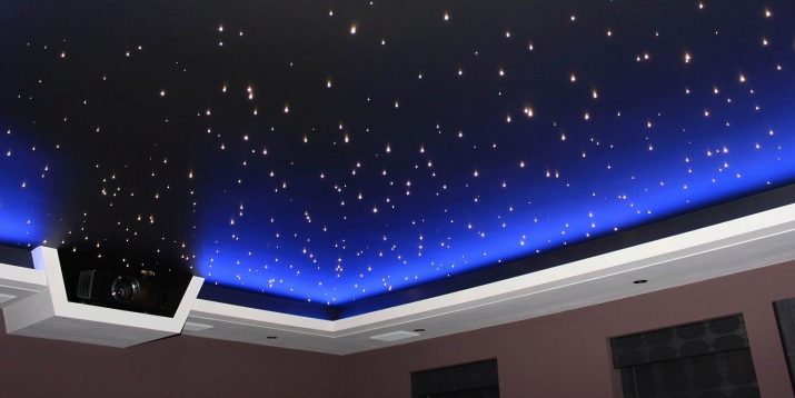 لإنشاء تأثير ساحر ، تم تجهيز الأسقف المرنة بشكل إضافي بإضاءة خلفية ، ويتم دمج اللوحات القياسية مع طباعة الصور والأنسجة المختلفة.