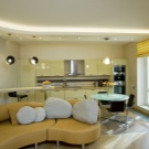 سقوف متوترة من مستويين للمطبخ وغرفة المعيشة