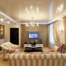 يمكن أن يكون تصميم السقوف الممتدة ذات المستويين مختلفًا ، بما في ذلك مزيج غير عادي من الألوان والقوام. لذلك ، فإن هذا النوع من البناء مناسب لأي تصميم داخلي داخلي. تجدر الإشارة بشكل خاص إلى أسقف غرفة المعيشة ، بفضل تقنيات التثبيت الحديثة ، يمكنك إنشاء تأثير مرئي أصلي في الغرفة.
