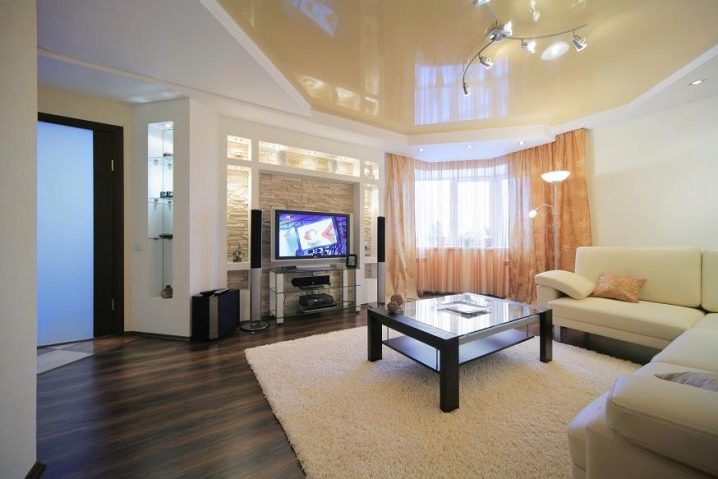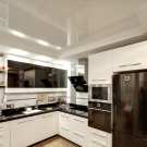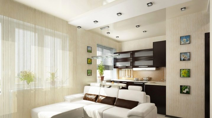 في الآونة الأخيرة ، تم استخدام السقوف الممتدة ذات المستويين للمطبخ وغرفة المعيشة على نطاق واسع. هذا خيار رائع لإنشاء تصميم داخلي حديث أو عالي التقنية. ميّز بين الأسقف اللامعة وغير اللامعة. يتم تقديم الفيلم اللامع في العديد من القوام والظلال ، وهو مصنوع من مادة PVC. هذا النوع من الأسقف مناسب لعشاق الكلاسيكيات ، حيث تهيمن عليه بشكل أساسي الرسومات الصارمة وإدراج المعدن والرخام.