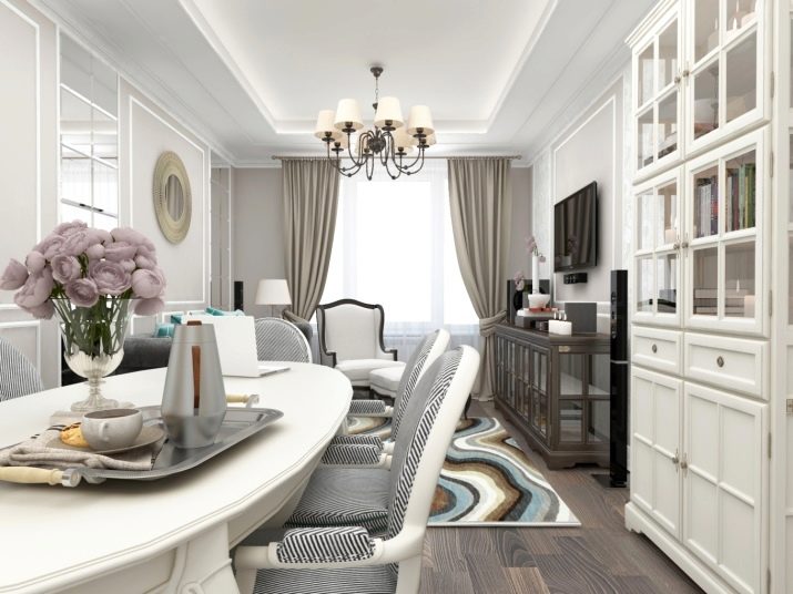 تسمح الأسقف الممتدة ذات المستويين للمصممين بدمج أي أشكال وألوان من اللوحات بشكل متناغم ، ولا توفر التصميمات ذات الإضاءة الخلفية إضاءة ثابتة لضوء النهار فحسب ، بل تؤكد أيضًا بشكل جميل على النمط العام للغرفة.