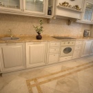 أرضيات التسوية الذاتية مناسبة أيضًا للمطبخ. لكن نادرا ما يتم استخدام مثل هذا الطلاء. مزاياه الرئيسية هي المتانة والنظافة. يمكن تثبيت أرضيات من هذا النوع مرة واحدة ونسيان الإصلاحات لعدة سنوات..