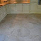 بلاط السيراميك مناسب أيضًا لتغطية أرضيات المطبخ. مثل اللامينيت ، فإنه يرضي أنه يمكنه تقليد أي نوع من الطلاء. يمكن أن يكون بلاط السيراميك إما لامعًا أو غير لامع. عادة ما تكون التشطيبات غير اللامعة محمية بطبقة إضافية ، مما يسمح لها بالحفاظ على لونها النبيل بمرور الوقت..