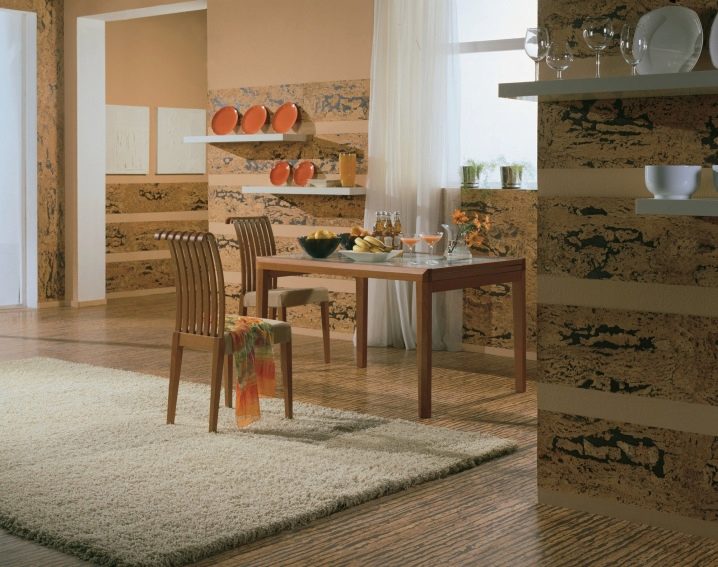 لتغطية الأرضية في المطبخ ، من الأفضل استخدام المواد ذات الألوان الطبيعية – الأصفر والبني والبيج والباستيل. لكن في نفس الوقت ، من المستحسن أن يتم تشريب سطح المادة بعامل خاص يمنعها من امتصاص كل الرطوبة والدهون. سوف يخدمك الفلين المحدد والمثبت بشكل صحيح لفترة طويلة ، بينما يظل ممتعًا من الناحية الجمالية.