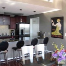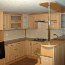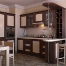 بالنسبة لأي مساحة مطبخ ، فإن مثل هذا التصميم مثل عداد البار هو دائمًا زخرفة. إذا كان المطبخ فاتحًا ، يجب أن تختار سطحًا متباينًا داكنًا لعداد البار..