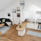 بالنسبة للمطبخ الذي تبلغ مساحته 6 أمتار مربعة ، فإن طاولة البار ذات المستويين ستكون حلاً ممتازًا. ستكون نفس الفكرة ذات صلة في شقة استوديو صغيرة. يتكون الهيكل من قطعتين من الأثاث ، مدمجتين في قطعة واحدة: من المطبخ يبدو وكأنه طاولة طعام عادية ، ومن غرفة المعيشة يبدو مثل طاولة بار.