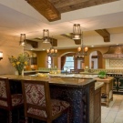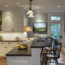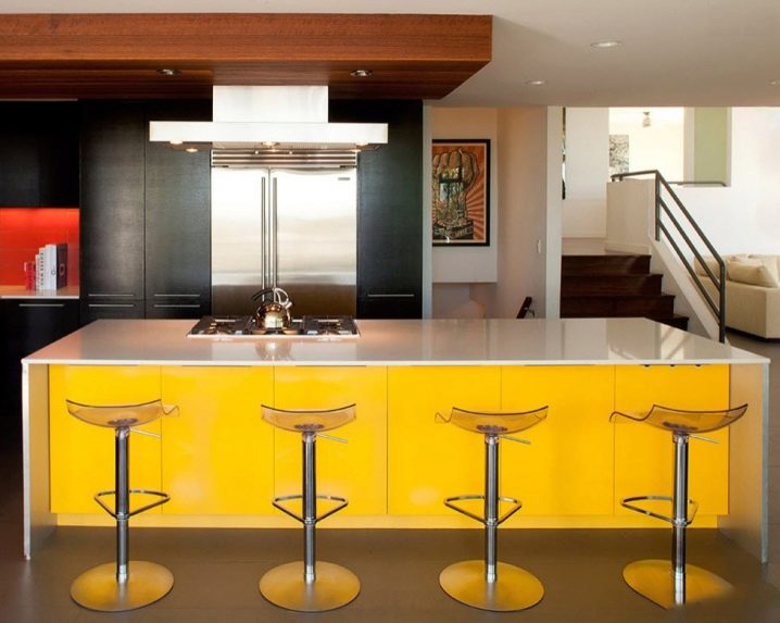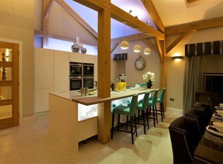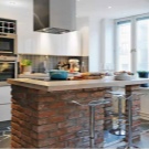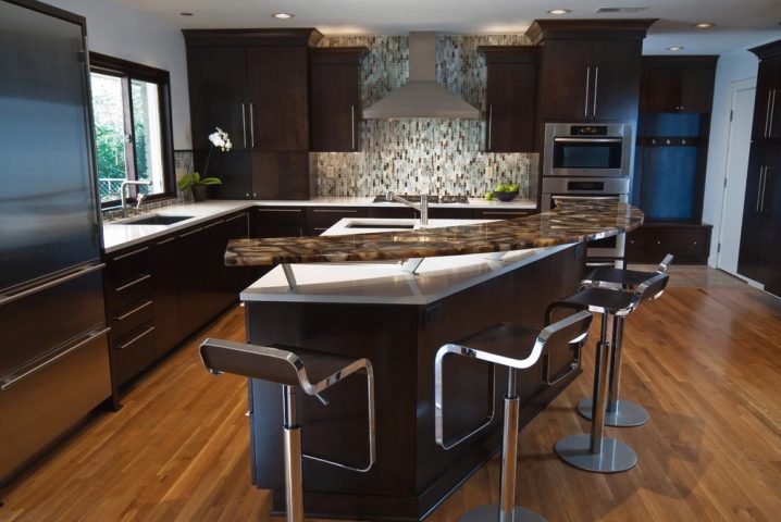 ولكن بالنسبة للمطبخ حيث “يوجد مكان للتجول” ، فمن الأفضل اختيار شكل البار ، وهو عبارة عن جزيرة. يتم تثبيت هذا التصميم في منتصف المطبخ مباشرة ويخلق بيئة خاصة لا يمكن إلا أن تجذب النظرات المتحمسة لضيوفك. في هذه الحالة ، يمكنك الاقتراب من سطح العمل في أي مكان ، وهذا مريح للغاية – سواء لعملية الطهي أو مباشرة أثناء الاحتفال..