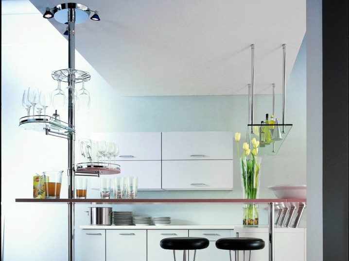 اليوم ، تنتج صناعتنا مجموعة متنوعة من عدادات القضبان للمطبخ ، لذا فإن اختيار النوع المناسب لتخطيط شقتك الخاصة لن يكون أمرًا صعبًا. لسوء الحظ ، غالبًا ما تحتوي مطابخنا على مساحة صغيرة جدًا ، يصعب التفكير فيها في موقع هيكل معين. في هذا الصدد ، فإن أصحاب المطابخ محظوظون جدًا ، حيث يوجد مخرج إلى الشرفة. في هذه الحالة ، يمكن إعادة التطوير عند إزالة الجدار الفاصل بين المطبخ والشرفة ، وبالتالي تزداد مساحة المطبخ..