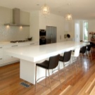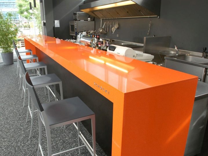 يعد عداد البار للمطبخ المصنوع من الحجر الاصطناعي حلاً رائعًا آخر. اسفنجة رطبة كافية للعناية بهذا السطح. الطلاء متجانس ، لا يمكن للميكروبات والأوساخ الوصول إليه داخل المواد ، وهو أمر مهم جدًا لنظافة طلاء المطبخ. إذا قررت اختيار قضيب مصنوع من الحجر الصناعي ، فسوف تفاجأ بمدى روعة اختيارهم..