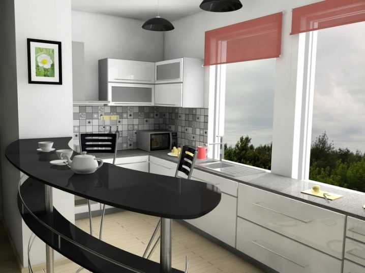 بالنسبة للعديد من المطابخ ، تعتبر مسألة الرحابة والفوضى وعدم وجود مساحة خالية مهمة للغاية. ويتم التخلص من هذه المشكلة بمساعدة حلول التصميم التي تهدف إلى زيادة الراحة في داخل المطبخ. يبدو ، لماذا نحتاج إلى طاولة بار في شقة ، أليس بارًا أو مطعمًا؟ نعم ، لكن فوائده في مطبخ صغير ملموسة جدًا: يتم توفير المساحة على حد سواء ، ويبدو أن المساحة أوسع ، وبشكل عام ، يتم تغيير المطبخ بصريًا.