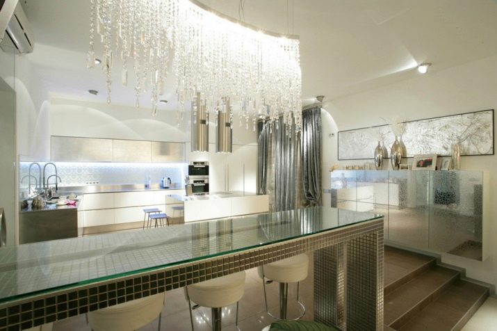 تبدو المطابخ الأنيقة أصلية لا تقل عن ذلك. "العلية", التي يكون الخيار الأفضل لها هو مكونات الكروم ذات الظلال الغنية والإضاءة المحلية ، والتي يبدو التصميم بأكمله منها أكثر تطوراً.