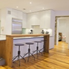 يشبه تصميم شريط المطبخ الكلاسيكي أيضًا في شكله عدادات البار المحترفة في الحانات والمطاعم. في النسخة “المستأنسة” ، هي عبارة عن سطح طاولة به وحدات تحكم بار بارتفاع 110-115 سم فوق الأرض وإضافة على شكل كراسي مرتفعة أو مقاعد أو نصف كراسي مع مسند قدم ومساند للذراعين مريحين.