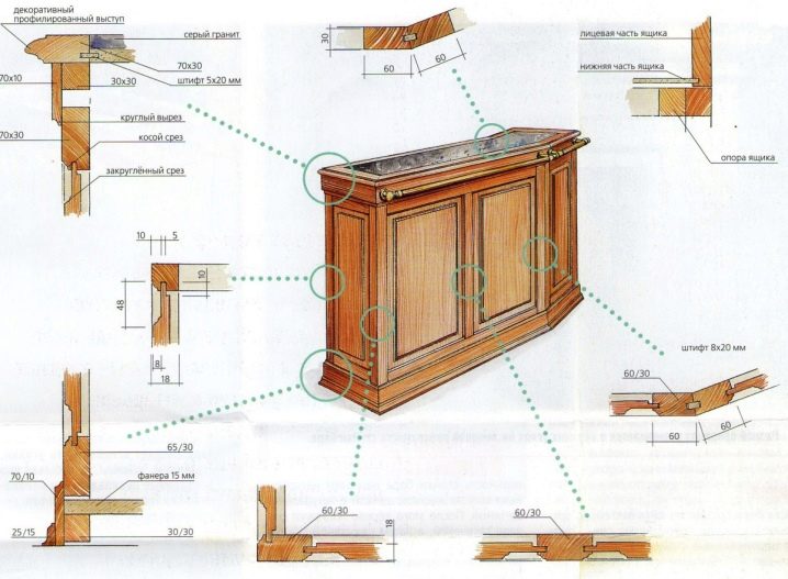نأخذ حتى ألواح الخشب الرقائقي ونخيطها في المنطقة القبيحة من أسفل سطح الطاولة والإطار. بعد ذلك ، نقوم بتثبيت الألواح الزخرفية عند مفاصل الهيكل ، باستخدام مسامير خاصة لهذا الغرض (لها رأس صغير). نقوم أيضًا بتزيين الزوايا بقواعد لجعل المنضدة تبدو جميلة وجماليّة..