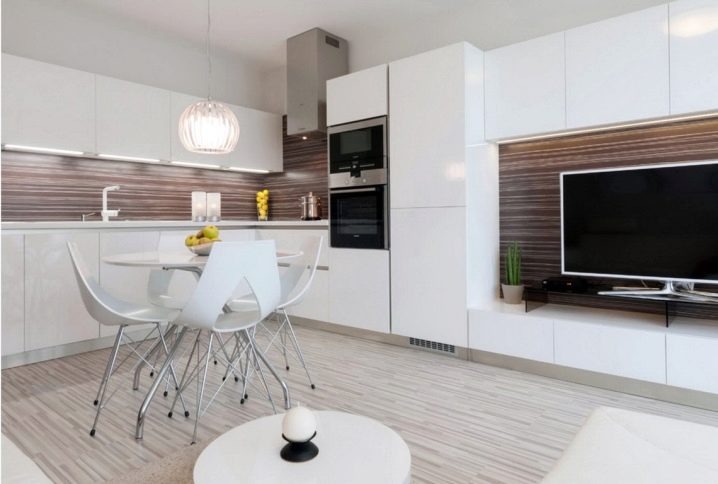 السقوف المتوترة ، التي تخلق مظهرًا عصريًا ومثيرًا للإعجاب ، مناسبة تمامًا للديكور الداخلي العصري للمطبخ. لا تخف من استخدامها في غرفة يتم فيها تحضير الطعام باستمرار ، فهي مقاومة للحرارة ويمكن غسلها بسهولة من أي بقع. من الأفضل اختيار أنواع لامعة من ظلال الضوء..
