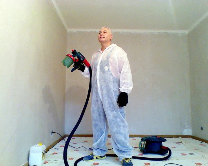 يعد طلاء السقف بضاغط كهربائي ومسدس رش أمرًا جيدًا لأن الطلاء موزع بالتساوي على السطح ، ويتم حفظ المادة نفسها قدر الإمكان. العيب في المعدات باهظة الثمن (يمكن استئجارها) ، وصعوبة الحفاظ على الوحدة ، وارتفاع استهلاك الطاقة والضوضاء أثناء العمل.