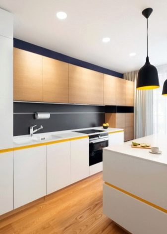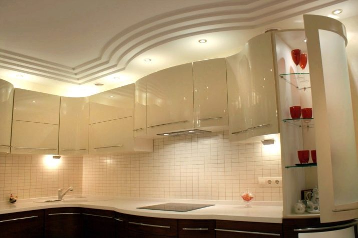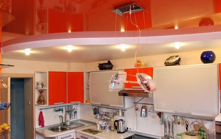 في المطبخ الحديث ، كما هو الحال في الغرف الأخرى ، من الممكن تمامًا تثبيت الأسقف المعلقة متعددة المستويات بإضاءة موضعية. يمكن إخفاء المصابيح أثناء الانتقال بين المستويات أو وضعها في صف أعلى الموقد وسطح الطاولة. الأسقف المعلقة والمعلقة لها تأثيرات مختلفة على التأثير البصري في الغرف ذات الأسقف المنخفضة والعالية. إذا كان الارتفاع صغيرًا 2.2 – 2.5 متر ، فإن الطلاء من هذا النوع يكون أكثر قدرة على تحديده.