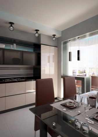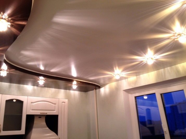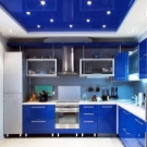 السقوف المتوترة ، التي تخلق مظهرًا عصريًا ومثيرًا للإعجاب ، مناسبة تمامًا للديكور الداخلي العصري للمطبخ. لا تخف من استخدامها في غرفة يتم فيها تحضير الطعام باستمرار ، فهي مقاومة للحرارة ويمكن غسلها بسهولة من أي بقع. من الأفضل اختيار أنواع لامعة من ظلال الضوء..