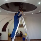 سقف التمدد مسطح تمامًا ، بدون أصغر عيوب ، سهل التنظيف ويبدو مثيرًا للإعجاب. لكن تركيبه ليس سهلا ، فهو يتطلب شد النسيج الصناعي بمعدات خاصة وفي درجات حرارة عالية. يمكن للمتخصصين ذوي الخبرة فقط القيام بهذا العمل. أثناء التثبيت ، يجب أن تهتم فورًا بموقع المصابيح المدمجة ؛ لن تتمكن من استبدال الأماكن الخاصة بها في المستقبل. ولكن عندما تغمر المياه من الأعلى ، سيتم الاحتفاظ بكل المياه من خلال القماش ولن تتسرب على أثاث المطبخ والأرضية والجدران. من الممكن إنشاء أسقف متعددة المستويات في المطبخ ، يتم شد الطبقة العليا منها ، والمستوى السفلي من اللوح الجصي مع التشطيب.