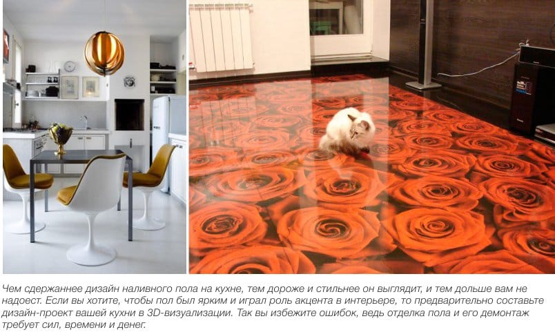 لاحظ العديد من الأشخاص إضافة أخرى لأرضية التسوية الذاتية – متنوعة. يمكنك اختيار أي نوع من الأسطح وفقًا لتصميم المطبخ. في الأساس ، يعمل عدد كبير من الشركات على إنشاء أوامر فردية. هذا الخيار مناسب إذا كنت لا تنوي إنشاء نفسك.