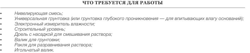 بعد الانتهاء من جميع المراحل التحضيرية ، يمكنك المتابعة إلى العملية الرئيسية – إنشاء أرضية ذاتية التسوية في المطبخ. كما هو مذكور أعلاه ، فإن العمل ليس صعبًا ، فالشيء الرئيسي هو مراقبة التكنولوجيا والتسلسل.