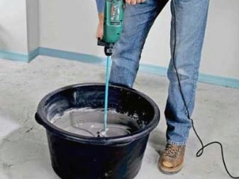 تحتاج أولاً إلى معالجة الخليط الجاف ، الذي يشكل أساس الطلاء. يجب سكبه في وعاء مناسب ، إضافة الماء (الكمية موضحة على العبوة) ، قم بخلط المكونات حتى يتم الحصول على كتلة متجانسة. في هذه العملية ، من الأفضل استخدام مثقاب مع مرفق خاص. يستخدم الحل للعمل مباشرة بعد التحضير. هذا يرجع إلى حقيقة أن التكوين يتماسك بسرعة.