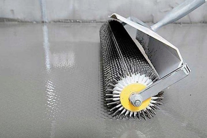بعد تنظيف وتسوية القاعدة الخرسانية ، ضع طبقة أولية على السطح. يجب توزيع الطبقات بالتساوي باستخدام بكرة لهذه العملية. يجب تحضير القاعدة مرتين. يتم تطبيق الطبقة الثانية فقط بعد التجفيف الأول ، لذلك عليك الانتظار قليلاً.