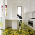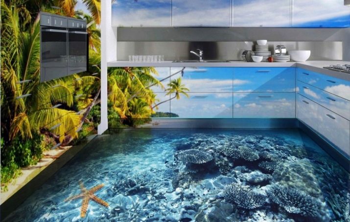 يمكن العثور على أرضيات التسوية الذاتية ليس فقط في الشقق أو المنازل. غالبًا ما تستخدم هذه التقنية في تصميم المطاعم وصالات العرض. تبدو هذه الأرضيات دائمًا باهظة الثمن ومثيرة للإعجاب. بالنسبة لترتيب أماكن المعيشة ، فغالبًا ما يزينون غرفة وظيفية مثل المطبخ.. ويرجع ذلك إلى وجود المزايا التالية: