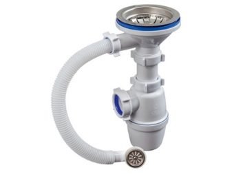 - ليس من الضروري شراء سيفون في نفس وقت الحوض. يمكن القيام بذلك حسب الحاجة ، الشيء الرئيسي هو الجمع بين الحجم والتصميم.