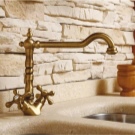 لا يحتاج الصنبور البرونزي إلى أي ملحقات تصميم إضافية. يؤكد هذا العنصر تمامًا على النمط العام للمساحة وحتى يؤدي وظيفة زخرفية معينة..