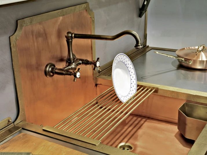المطبخ ، حيث يوجد صنبور البرونز ، يبدو جميلًا وأنيقًا وأرستقراطيًا. تعتبر رمزا للثروة والذوق الرفيع لأصحاب المنزل. تتكون مجموعة المنتجات من نماذج تقليدية وأكثر حداثة أو حسب الطلب.
