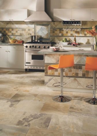 تتلاءم الأرضية الحجرية بسلاسة مع الجزء الداخلي لأي مطبخ, حيث لا يلزم تركيب أرضية دافئة ، يتم دمجها بشكل متناغم مع أي عناصر زخرفية. توفر الخواص الفيزيائية والميكانيكية للحجر غطاء الأرضية متانة وعملية هائلة. الأرضية غير قابلة للتآكل ، مقاومة للرطوبة ، لا تمتص الأوساخ.