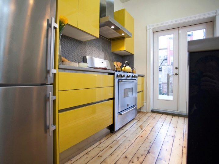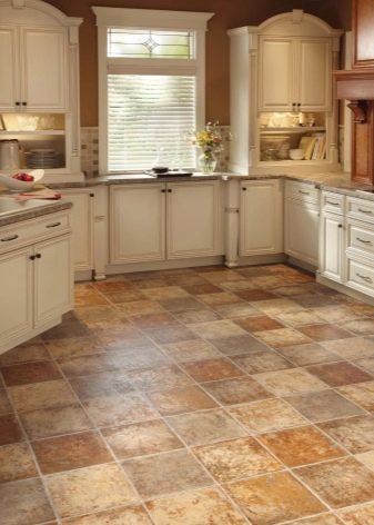 يعتمد المظهر الجمالي لأرضيات المطبخ ، بالطبع ، على حجم وتصميم الغرفة بأكملها. تملي المساحة المحدودة للمطبخ الصغير استخدام طلاء موحد رتيب ، مما يساهم في زيادة بصرية في مساحة الغرفة. بالنسبة للمطابخ الكبيرة أو خيارات الجمع بين المطبخ وغرفة المعيشة أو الردهة ، فإن غطاء الأرضية المذهل مثالي وسيصبح عنصرًا مستقلًا في الديكور. من الممكن تمامًا أن يصبح نظام الألوان المتواضع والملمس البسيط لمواد الأرضية أدوات لعرض تقديمي ناجح للديكور الداخلي غير المعتاد للمطبخ..