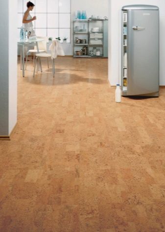 سوف تروق أرضية المطبخ مع غطاء الفلين أو القشرة لعشاق المواد الطبيعية الصديقة للبيئة. تعتمد المادة على لحاء شجرة الفلين ، الذي يتم إزالته من الشجرة كل بضع سنوات. المشي على أرضية الفلين ممتع للغاية للساقين ، ويعوض الضغط على المفاصل والعمود الفقري.