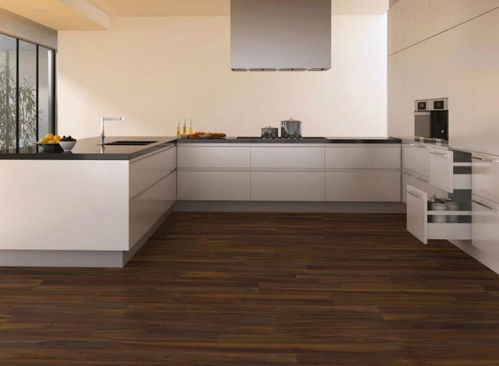 اللامينيت مثالي لتركيب التدفئة تحت الأرضية في المطبخ. العيب الخطير للأرضيات الخشبية هو مقاومتها المنخفضة للرطوبة. يتطلب وضع الأرضيات الخشبية في المطبخ وجود ذراع تسوية عالي الجودة في القاعدة. اليوم ، يتم إنتاج مادة عالية الجودة بخصائص ممتازة مضادة للماء..