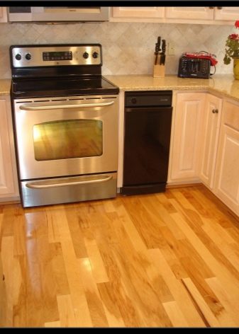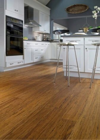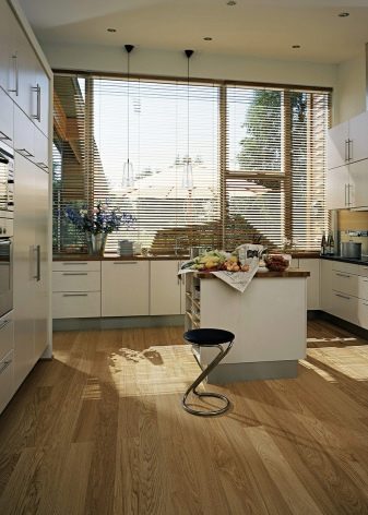 اللامينيت مثالي لتركيب التدفئة تحت الأرضية في المطبخ. العيب الخطير للأرضيات الخشبية هو مقاومتها المنخفضة للرطوبة. يتطلب وضع الأرضيات الخشبية في المطبخ وجود ذراع تسوية عالي الجودة في القاعدة. اليوم ، يتم إنتاج مادة عالية الجودة بخصائص ممتازة مضادة للماء..