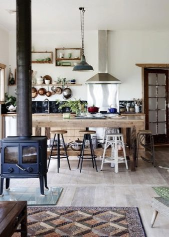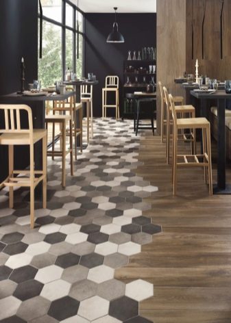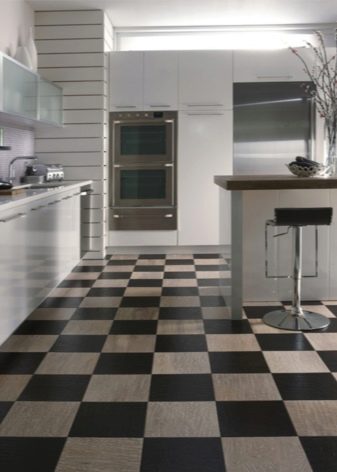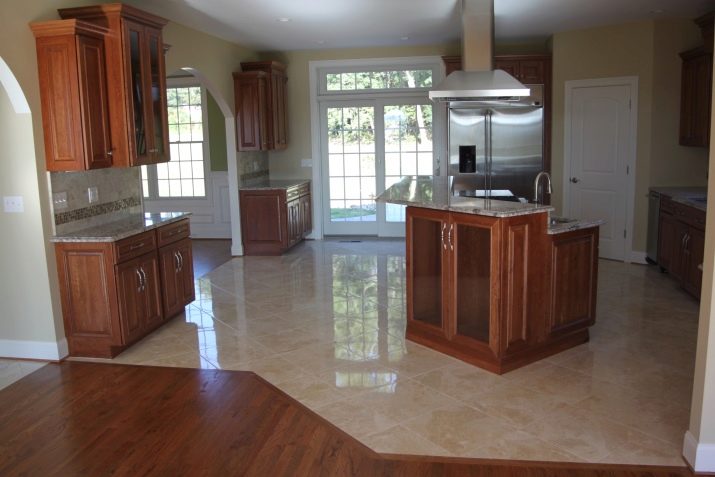 اليوم ، يستخدم المصممون بنشاط خيارات الأرضيات المختلفة لإضافة أسلوب حديث إلى الداخل. تسمح مجموعة متنوعة من الألوان والقوام ، على سبيل المثال ، بتوزيع مساحة مطبخ كبير ، وتسليط الضوء بشكل مشروط على مناطق الطهي وتناول الطعام ، ومنطقة الترفيه.