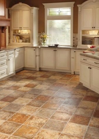 يعتمد المظهر الجمالي لأرضيات المطبخ ، بالطبع ، على حجم وتصميم الغرفة بأكملها. تملي المساحة المحدودة للمطبخ الصغير استخدام طلاء موحد رتيب ، مما يساهم في زيادة بصرية في مساحة الغرفة. بالنسبة للمطابخ الكبيرة أو خيارات الجمع بين المطبخ وغرفة المعيشة أو الردهة ، فإن غطاء الأرضية المذهل مثالي وسيصبح عنصرًا مستقلًا في الديكور. من الممكن تمامًا أن يصبح نظام الألوان المتواضع والملمس البسيط لمواد الأرضية أدوات لعرض تقديمي ناجح للديكور الداخلي غير المعتاد للمطبخ..