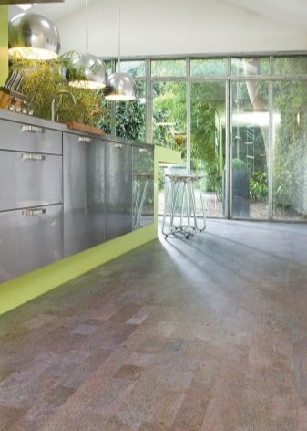 سوف تروق أرضية المطبخ مع غطاء الفلين أو القشرة لعشاق المواد الطبيعية الصديقة للبيئة. تعتمد المادة على لحاء شجرة الفلين ، الذي يتم إزالته من الشجرة كل بضع سنوات. المشي على أرضية الفلين ممتع للغاية للساقين ، ويعوض الضغط على المفاصل والعمود الفقري.