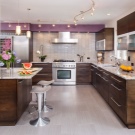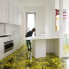 اتجاه تصميم جديد ، والذي يتكون من قرب مساحة أرضية خشبية بمساحة مصنوعة من مادة مختلفة داخل نفس مساحة المطبخ ، يضيف قوة إضافية للطلاء ويحدد الأسعار المعقولة.