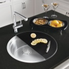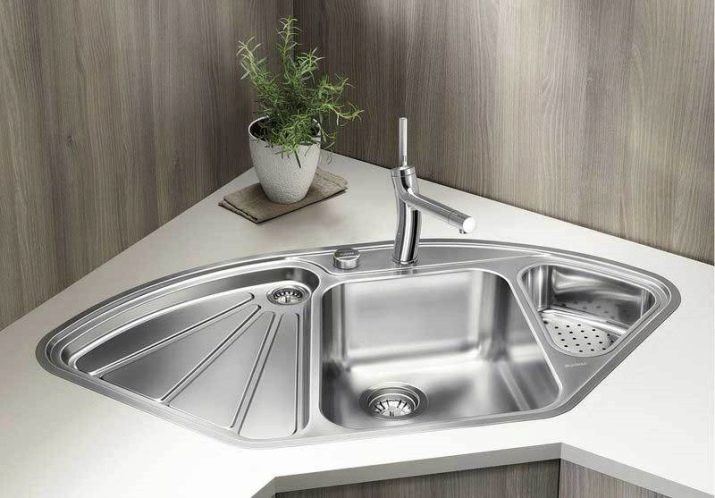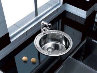 - للراحة ، يمكن أن يكون الحوض كبيرًا أو صغيرًا ، بجناح أو بدونه. تجد بعض ربات البيوت الأحواض المستديرة أكثر ملاءمة ، لأنها ، كقاعدة عامة ، تكون أكثر اتساعًا بنفس الأحجام مثل وعاء من شكل آخر. بالإضافة إلى ذلك ، تعتمد شعبية الحوض على نوع التصميم الداخلي الذي يناسبه. لذلك ، يعد الحوض المثلث خيارًا شائعًا عندما تحتاج إلى استخدام زاوية المطبخ ، وسيشغل مساحة صغيرة جدًا فيه..