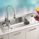 كان حوض المطبخ المزدوج محبوبًا من قبل العديد من ربات البيوت بسبب عمليته. هذا الخيار مناسب لأسباب عديدة. على سبيل المثال ، يمكنك نقع الأطباق في حوض واحد وغسلها في حوض آخر. أو يمكنك سحب الماء في وعاء واحد وغسل الأطباق الموجودة فيه وشطفه بالماء الجاري في وعاء آخر. بالمناسبة ، هذه طريقة رائعة لتوفير المياه..