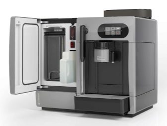 أحجار الرحى عالية السرعة مصنوعة من السيراميك ، مما يسمح للآلة بالعمل دون إصدار أي أصوات. تحتوي أحدث الموديلات على ذاكرة مدمجة ونظام التنظيف الذاتي. تشمل قائمة آلة القهوة الأنواع الكلاسيكية من المشروبات: أمريكانو ، كابتشينو ، لاتيه ومكياج لاتيه ، إسبرسو أو فقط الحليب الساخن ، ماء ساخن للشاي.