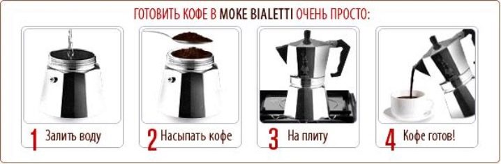 يوجد أيضًا جهاز مثل “Moka Express” ، والذي يعمل على مبدأ السخان. يمكن تحضير مشروب لذيذ باستخدام الموقد. هذه المنتجات مطلوبة في الجزء الأوروبي. في إيطاليا ، هذه سمة لا غنى عنها في مطبخ أي ربة منزل تحترم نفسها..