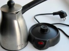- الأتراك الكهربائية. ظاهريًا ، يشبه هذا الجهاز مزيجًا من غلاية كهربائية وتركي السيراميك ، حيث يتم تثبيت حاوية القهوة على قاعدة مستديرة. توجد لوحة التحكم على مقبض البرج الكهربائي. الطراز الأكثر شيوعًا من هذا النوع هو ماكينة صنع القهوة TimeCup CM-620. هذا جهاز متعدد الوظائف يتيح لك تحضير مشروبك المفضل وفقًا لعدة وصفات ، أو تحضير الحليب المخبوز ، أو سلق البيض أو غلي الماء. العيب الوحيد للجولات الكهربائية هو بعض الصعوبة في الرعاية. يصعب غسل الأوعية ، ومن الضروري التأكد من عدم دخول الماء إلى الملء الإلكتروني للجهاز ؛