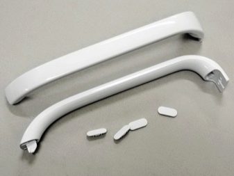 تعتبر مقابض الثلاجة من المنتجات الخاصة التي يتم توصيلها بالباب باستخدام مسامير خاصة أو براغي ذاتية التنصت. يمنحهم كل مصنع شكلاً فريدًا يسمح للتركيبات بالتناسب مع أسلوب التصميم العام. وتجدر الإشارة إلى أن المنتجات يتم تعديلها حسب حجم الأيدي البشرية ، ويتم حساب خصائصها التقنية مع مراعاة الأحمال الرئيسية. هذا يقلل من احتمالية حدوث أعطال عند فتح الباب فجأة..