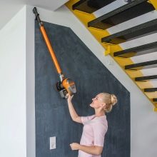 تم تجهيز الطرز بأنبوب شفط طويل بما يكفي يسمح بالوصول إلى الأفاريز وإزالة الغبار من الخزانات الطويلة. عند تنظيف الأجزاء الداخلية للسيارة أو الأماكن الضيقة الأخرى ، يمكن إزالة الأنبوب بسهولة ويستمر الجهاز في العمل بدونه. تم تجهيز جميع الموديلات اللاسلكية بفرشاة توربو كهربائية وفوهة مدمجة ، مما يسمح لك بإزالة الأوساخ العنيدة في أي مكان يصعب الوصول إليه. لا تشغل المكانس الكهربائية مساحة كبيرة ، فهي ملائمة للتخزين والنقل.
