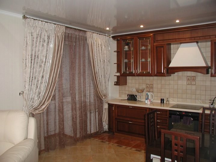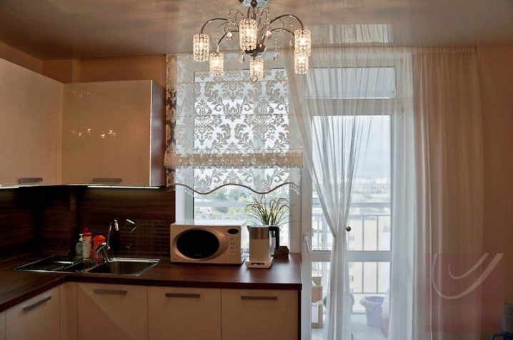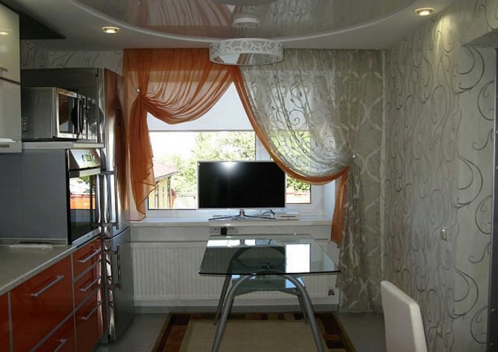 بالإضافة إلى اللون ، فإن تصميم الستارة مهم ، والذي يجب أن يعتمد على أسلوب تصميم المطبخ. بالنسبة للمطبخ عالي التقنية ، لن تعمل الستائر المطرزة بشكل لا لبس فيه. بالإضافة إلى ذلك ، يجب ألا تختار ستائر بإضافات مختلفة على شكل شرابات وأقواس ضخمة وأقواس. تتناسب كل هذه التجاوزات بشكل جيد مع داخل غرفة النوم وغرفة المعيشة ، ولكن ليس في منطقة المطبخ..