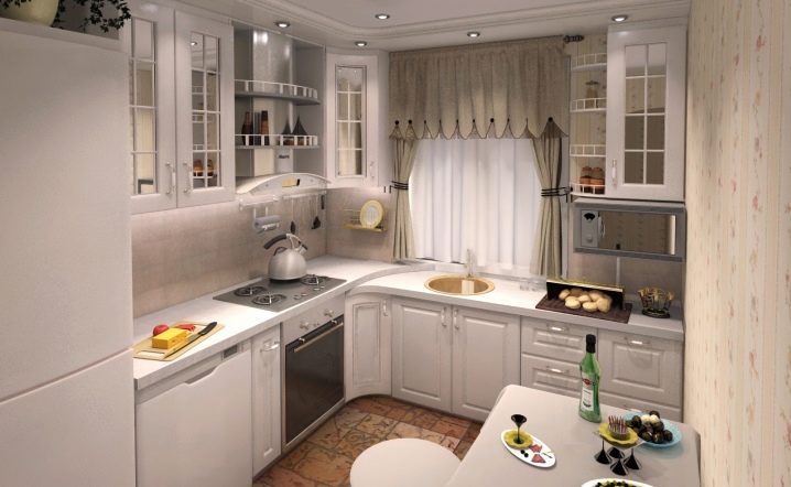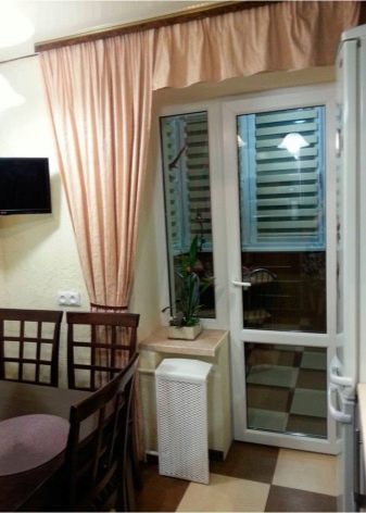 نقطة مهمة جدا. ستعتمد كل من مادة ونبرة الستارة عليها. بالنسبة للمطبخ الصغير ، يفضل استخدام الأقمشة جيدة التهوية والشفافة ذات الألوان الفاتحة الخفيفة. ستائر مصنوعة من مواد أكثر كثافة وأغمق مما يقلل المساحة بصريًا.